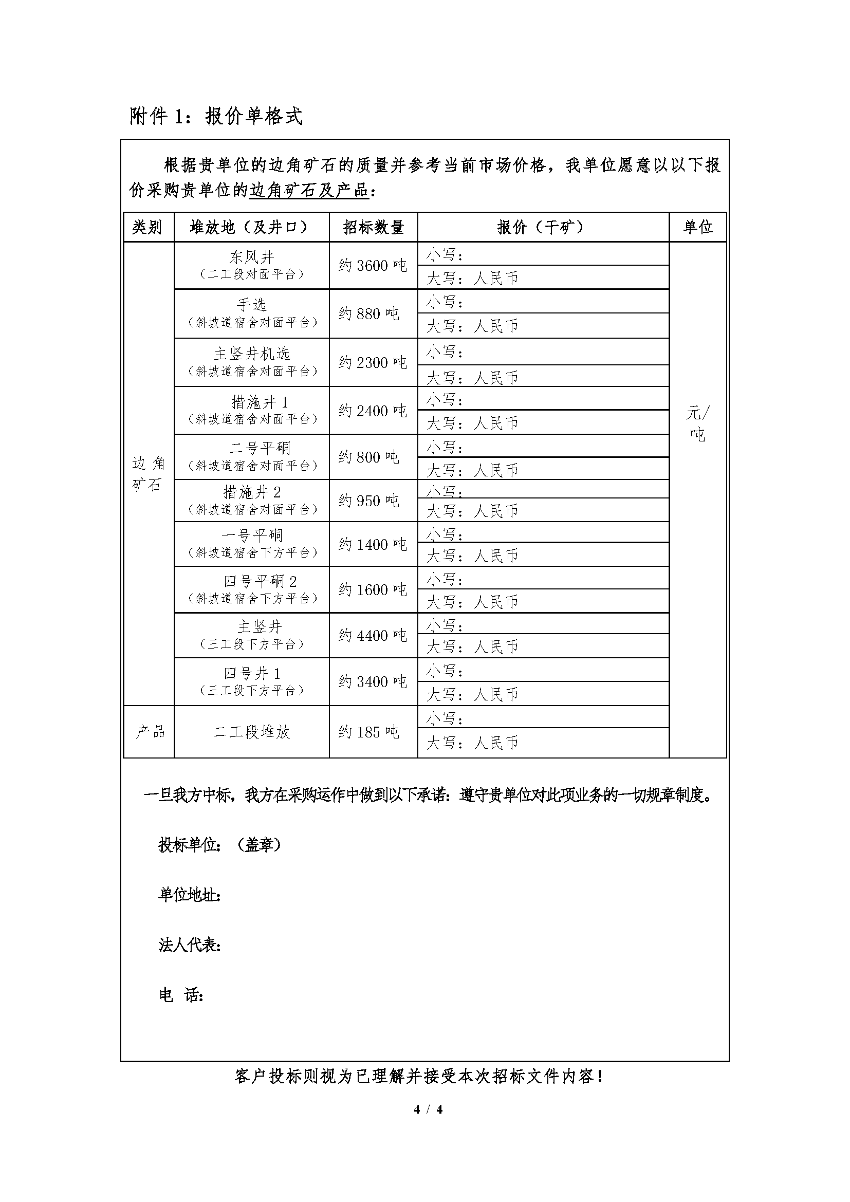 邊角礦石及產品招標文件